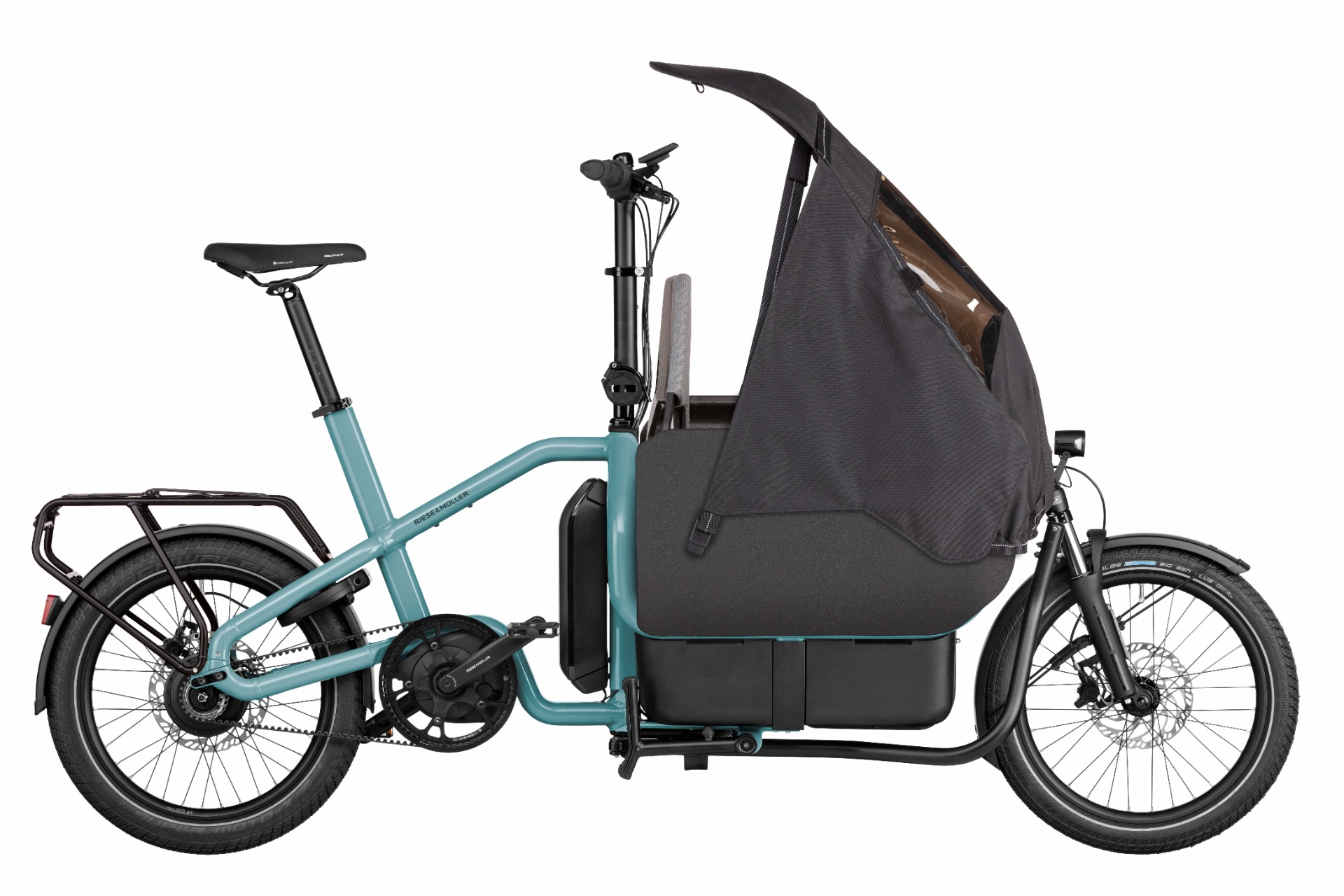 Namnet Flex Box säger allt: när den är hopfälld rymmer den en vanlig drickaback, och till och med upp till tre stycken när den är utfälld. Boxen kan låsas säkert och utökas med en högkvalitativ lastväska. Du kan transportera dina småttingar i en justerbar barnstol och regnskydd finns för de gråa dagarna.